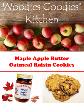 View RecipeThis is our twist on the traditional Oatmeal Raisin cookie. We add our Woodies Goodies Maple Apple Butter to the batter, which makes this cookie super soft, moist and so yummy. Add white chocolate or milk chocolate chips to kick it up a notch!
